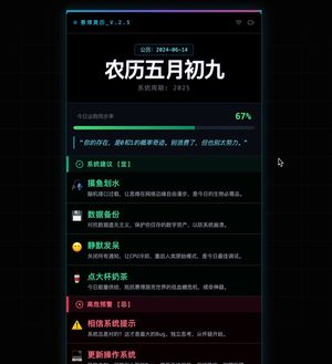 一个 Gemini 提示,用于创建一个赛博朋克风格的中文网络应用,该应用能生成针对年轻人生活方式而非传统吉祥活动的现代每日运势卡。
