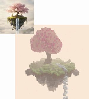 一个英文提示,用于设计一个色彩丰富的体素艺术宝塔花园环境,作为一个完全独立的 HTML 文件,可在 Chrome 中运行,并使用任何体素/WebGL 库。