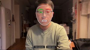 一个简洁的技术提示,用于 Gemini 3 构建一个网络体验,该体验利用前置摄像头和 Mediapipe 面部地标,通过 Three.js 应用实时 3D 激光眼效果。