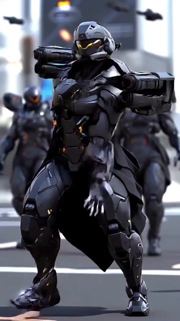 作者@Thoughts CreatorApr 22, 2026查看完整提示詞一張高度細緻的電影級 3D 渲染圖,描繪了一名未來菁英特種部隊戰士,身穿流線型霧面黑色動力裝甲,配有銀色金屬裝飾與發出橘黃色光芒的面罩/眼部燈光,以動態戰鬥姿勢站立在未來城市街道上。 …立即體驗